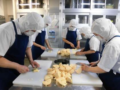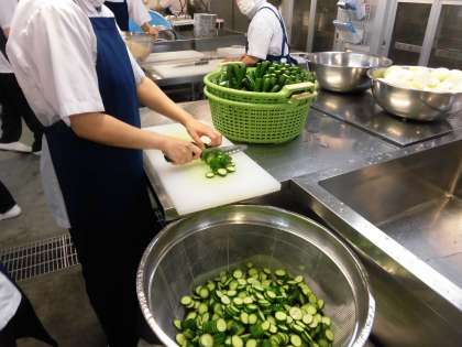 給食 たんけん 「今日の野菜は、全部手切り!」