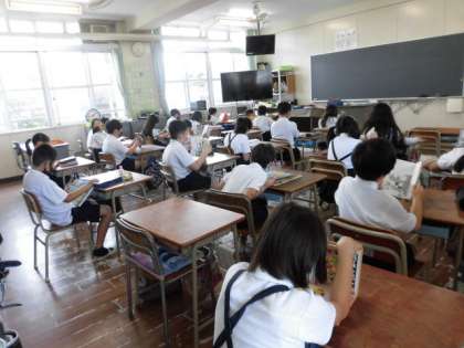 1組は朝の準備をしています。2組は静かに本を読んでいます。