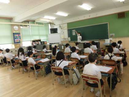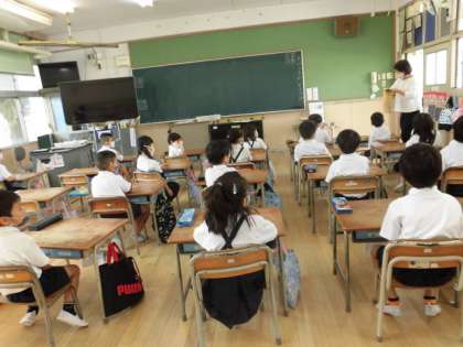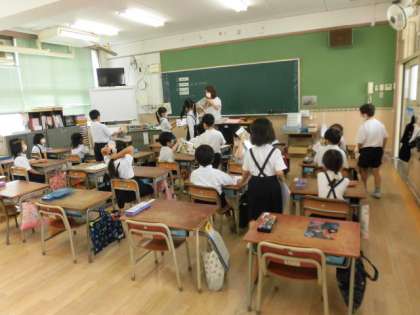 今日の予定の確認をしたり、宿題を集めたりしています。