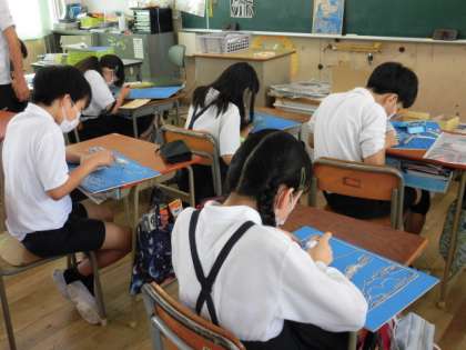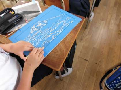 1組は図工で版画制作を行っています。彫刻刀の扱いが随分とさまになってきました。2組は社会で、国会や内閣についての学習をしています。