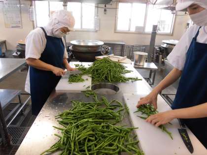 今日は、旬の「三度豆」と、スープに「てぼ豆」が入っています。