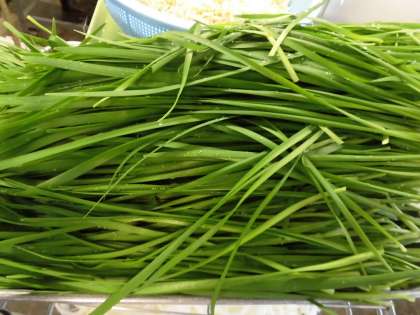 「にら」です。にらは、ねぎとにていますが、平べったい形をしています。