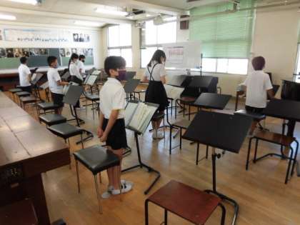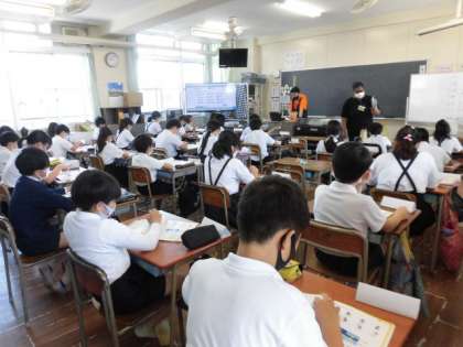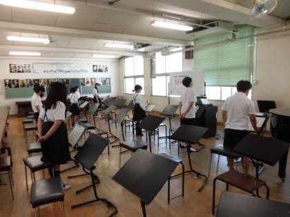 1組はC-NETの先生と一緒に「月」について、勉強しています。2組は音楽です。「校歌」を歌いました。元気なグループとそうでないグループがありました。元気よく、大きな声で歌いましょう!