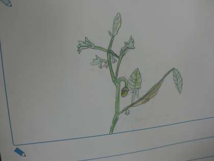 自分が植えた、ミニトマトを観察しました。