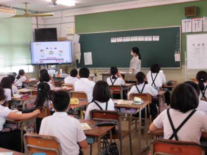 1組は社会のテストです。ゴミやゴミ焼却場についての範囲です。2組は英語です。「何曜日に何をした?」かの学習をしています。