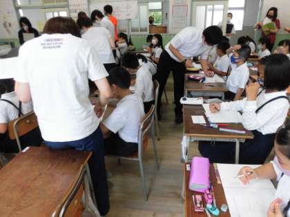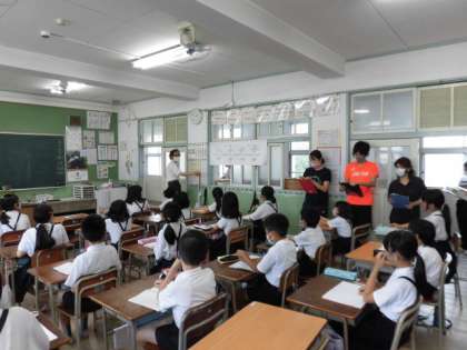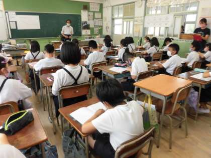 今日はたくさんの先生が見守る中、算数の研究授業がありました。180度より大きい角度をどのように測るかについて、いろいろな方法を考えながら学習をしました。とても一生懸命授業をがんばっていました!