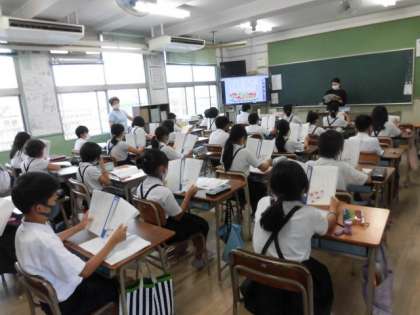 1組は2つのグループに分かれて算数の授業です。小数についての学習です。2組は国語「走れ」も終わりに近づいてきました。