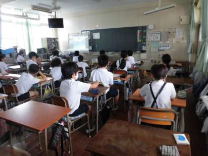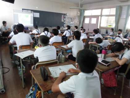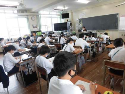1組は算数のテストをしています。小数の範囲です。2組は交通安全のDVDをみて、特に自転車の交通ルールについて、学んでいます。