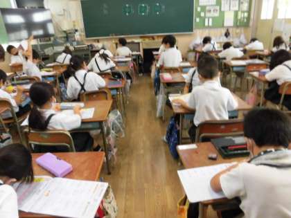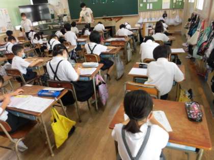 国語で「朝」「北」「今」の漢字の練習をしています。「北」は北巽小学校の「北」やからしっかりと覚えなあかんという声があがっていました!