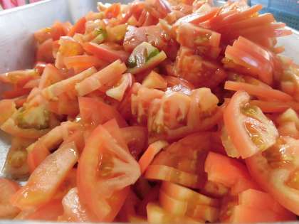 今日は、じゃがいもとトマトのチーズ焼きに旬のトマトを使っています。