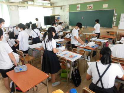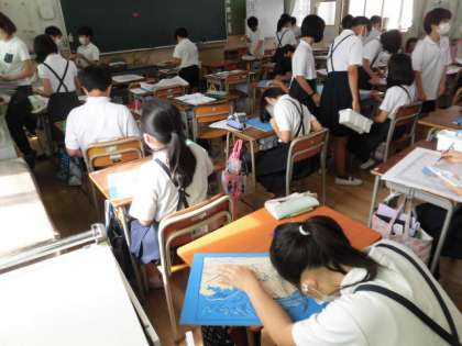 1組も2組も版画の続きをしています。版画に色を塗っている人が多くなってきました。1組は完成した人が増えてきました。