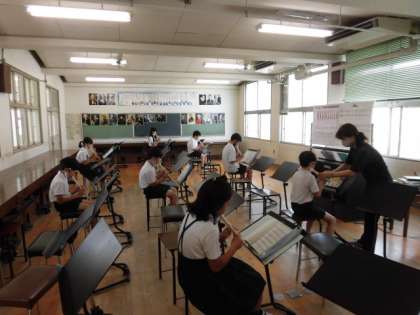 1組は音楽です。リコーダーを練習してきた甲斐があり、上手に吹ける人が増えてきました。教室では、心の天気を入れたり、タブレットドリルをしたりしています。2組は理科で、台風の目や発生の仕方について学習しています。