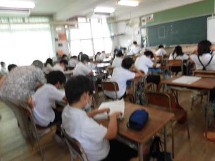 1組も2組も「比」についての算数のテストをしています。