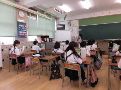 1組も2組も国語「おおきなかぶ」について学習をしています。1組は代表の児童が出てきて、役になりきって演技をしてくれました。2組は強調するところをしっかりと意識をして上手に音読をしていました。