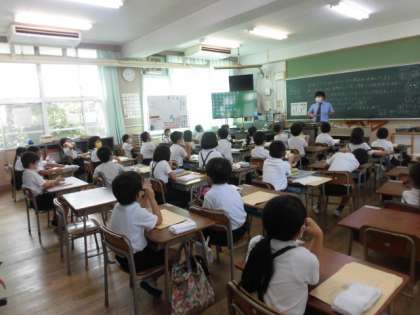 1年生と2年生の朝学活の様子です。しっかりとお話を聞くことができています。
