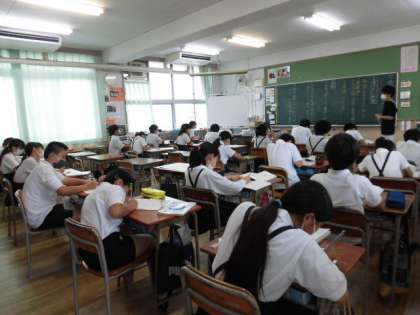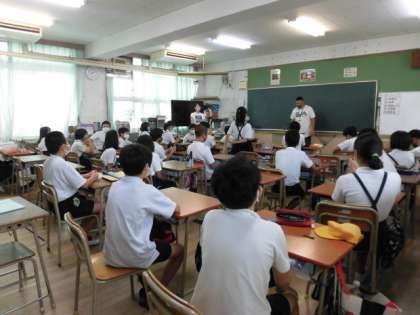 1組は国語で丁寧語、謙譲語などの敬語について学習をしています。言葉遣いは大切なので、しっかりと覚えようね。2組は教育実習生の自己紹介の後に、自分たちの自己紹介を順番にしていきました。よろしくお願いします!