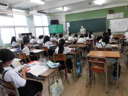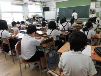 1組は算数で割り算のプリントをしています。2組は国語で「ふしぎ」という金子みすゞさんの詩を勉強していきます。