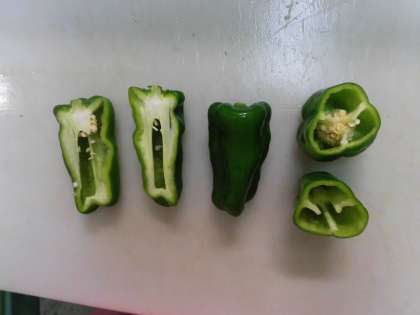 ピーマンを縦に切ったり、横に切った写真を見てくださいね。