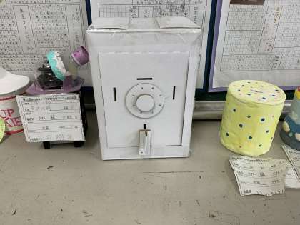1.きんこのかたちのちょきんばこ。しめてダイヤルをまわすとあかなくなります。