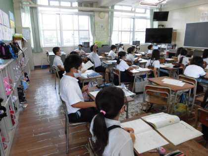 1組は道徳で「ごめんねサルビアさん」から、植物や動物を育てることについて、その植物や動物の気持ちになって考えようとしています。2組は社会でパン工場について学びます。その前に、3−2のみんながどんな種類のパンが好きかをアンケートしました。カレーパンが一番人気でした!その他にもたくさんおいしそうなパンを挙げてくれました。