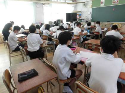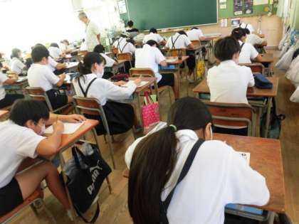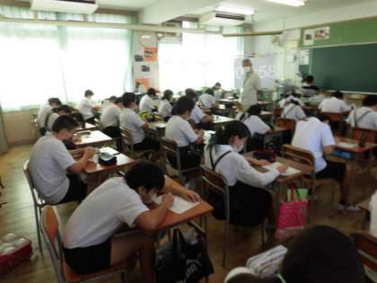 1組も2組も国語の授業です。1組は漢字のテストをしています。2組は1学期のまとめプリントをしています。