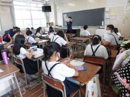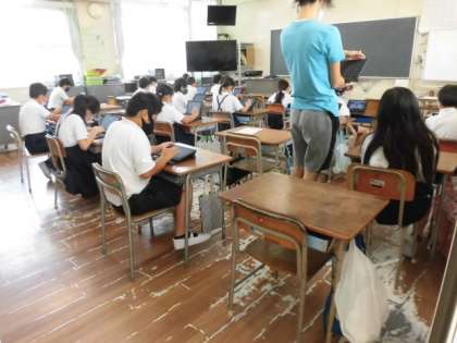 1組は☆がたくさんある中から5つずつまとめることにより、数を数えやすくなることを考えています。2組はタブレットドリルをしています。自分で好きな教科を選んで、自分のペースで進めていきます。
