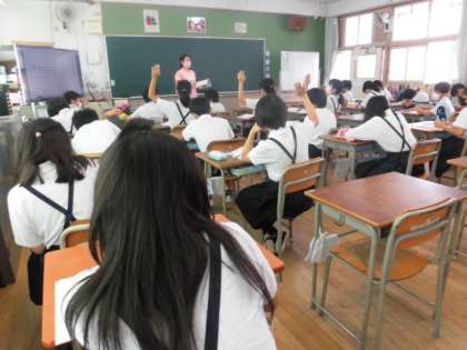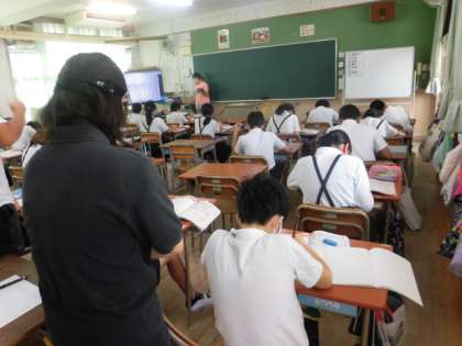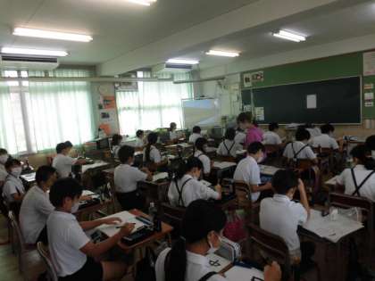 1組は書写です。「中秋の名月」という字を書いています。そろそろそのような季節ですね。2組は算数で、円の面積の求め方について学習をしています。