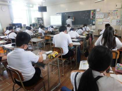 1組は道徳でソフトボールの上野選手の「ソフトボールに恩返しを」について、考えています。2組は社会で、専業農家、兼業農家など日本の農業について学習をしています。