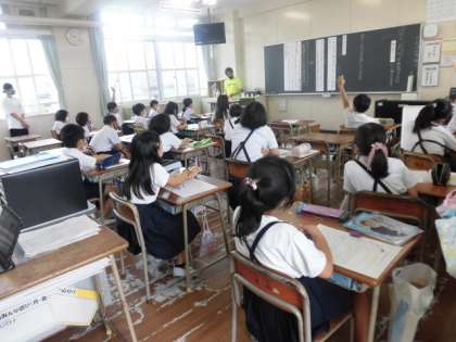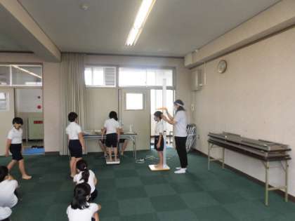 1組は国語の授業を教頭先生がしています。パラリンピックが目指すものについて、教科書に何が書かれていたかをどのように要約するかを考えています。2組は二測定です。早寝早起きの大切さについて、保健室の先生からお話を聞いた後、身長と体重を測りました。みんなの成長には早寝早起きは欠かせません。生活習慣を整えようね。