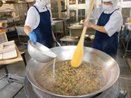 最後に、水どきでんぷんを加えてとろみをつけています。