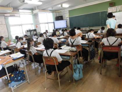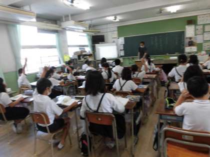 1組も2組も国語の授業です。「一つの花」というお話を題材に、段落分けをしたり、登場人物の気持ちを考えたりしています。