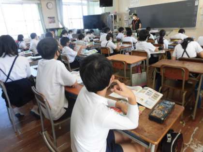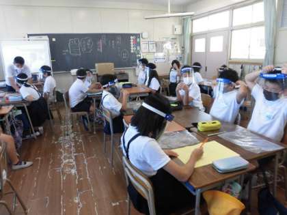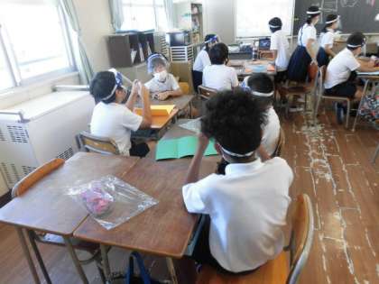 1組は社会です。米づくりについて、学習をしています。2組は学活で、委員会や係活動などの仕事をまとめて、写真をつけてポスターにします。