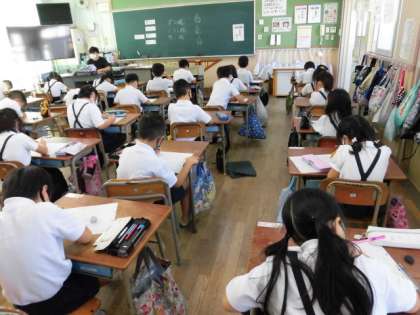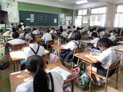 算数をしています。たし算、ひき算、かけ算、文章題などいろいろな問題の確認をしています。