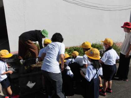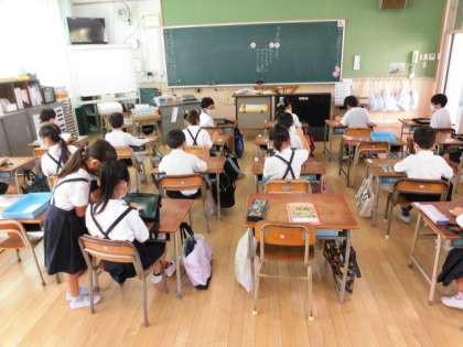 1組は生活です。運動場にでて、いろいろな生物をタブレットの写真で撮っています。どんな生物がいたかな?2組はタブレットドリルをします。最近習った3つの数の計算をしていきます。1年生もちょっとずつタブレットに慣れてきました。