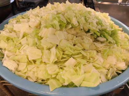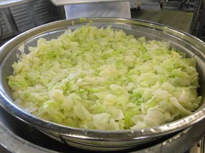 じつは、量がへります。2枚目の写真は、ゆでる前の生のキャベツで3枚目の写真はゆでた後の写真です。