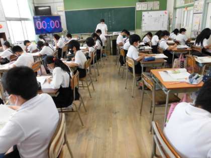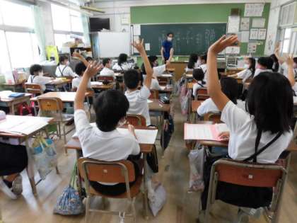 1組も2組も国語です。1組はテストが返却されました。返却されたテストについて、詳しく説明を受けています。しっかりと復習しておこうね。2組は昨日1組が受けていた、テストをしています。教科書を見てする長い文章のテスト、がんばろうね!