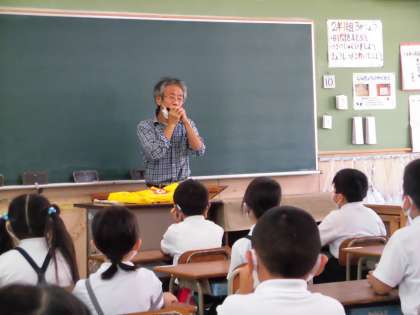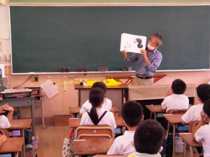 学校としても久しぶりの出前授業で、子どもたちもとても楽しみながら授業を受けることができました。「うどんのうーやん」や「ぼくらはうまいもんフライヤーズ」などを読み聞かせしていただきました。先生のハーモニカも、おもしろかったですね。