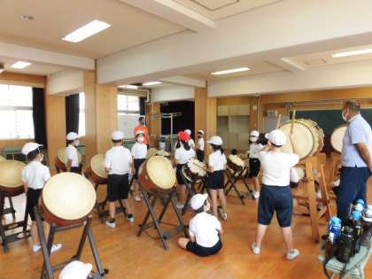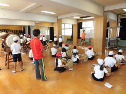 運動会の練習です。それぞれのパートに分かれて、練習しています。楽器の音がよく聞こえていました!