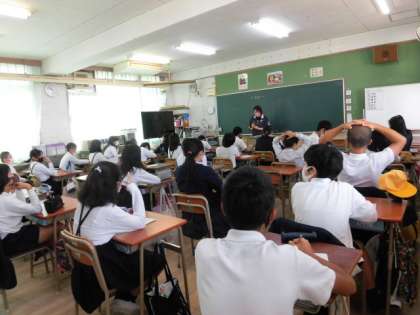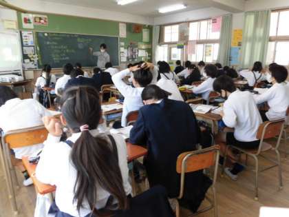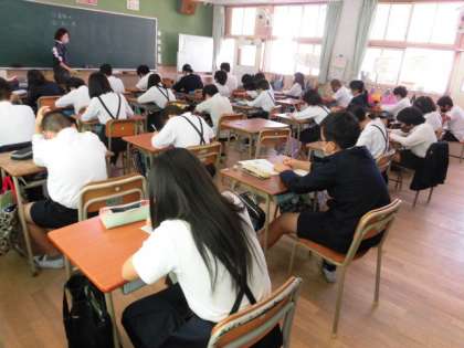 1組も2組も社会です。1組は室町時代の文化について学習をしています。2組は鎌倉時代の口頭テストをしています。