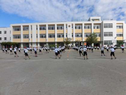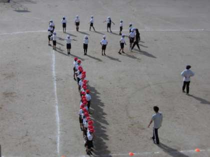 運動会の練習をしています。ダンスがそろってきています。今日は運動場で、ダンスとダンスの間の移動練習もしています。