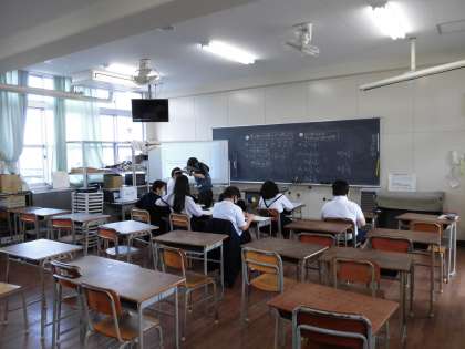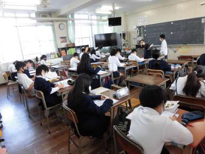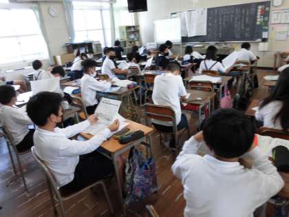 1組は算数です。いろいろな分数や小数が混じった計算をしています。2組は国語です。和菓子の歴史や文化について考えをまとめています。