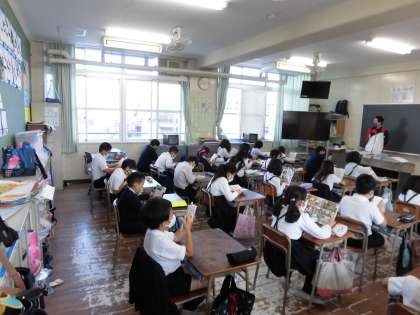 1組は理科のテストです。太陽や温度計の見方についてが範囲です。2組は図書のじかんです。みんなしっかりと静かに本を読んでいます。