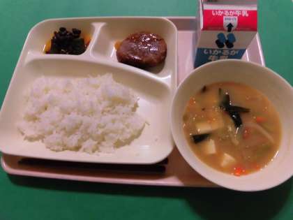 ・和風ハンバーグ・とうふのみそ汁・かぼちゃのいとこ煮・ご飯・牛乳 です。
