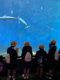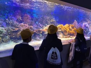 大きな水槽で泳ぐ魚たちにみんな夢中です♪