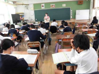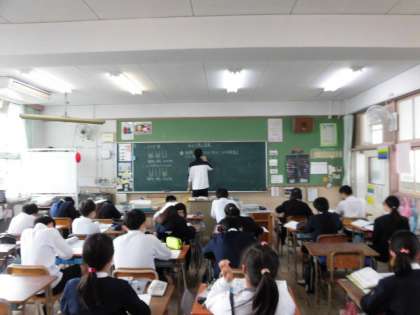1組は理科です。水溶液と金属との関係について、学習をしています。ノートも色分けをしてきれいに書けています。2組は国語のテストが返ってきました。良かった人が多かったようです!