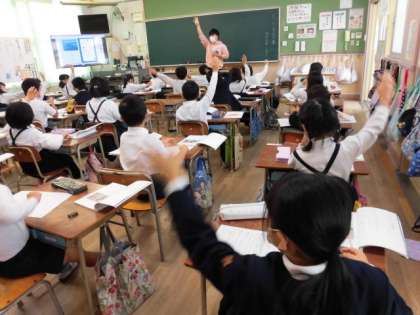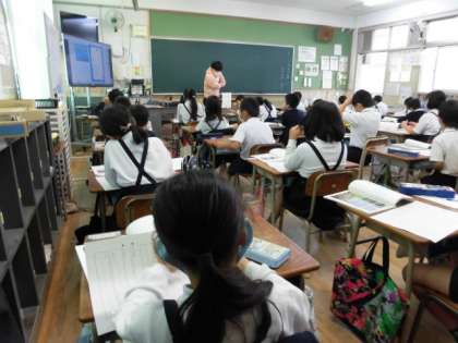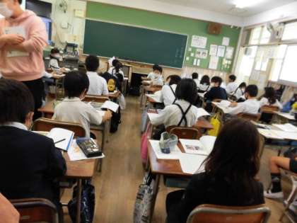 国語の授業です。「ビーバーの大工事」で本文をしっかりと読み、ビーバーがどこに住んでいるのか?やどうやって泳ぐのか?などを答えていきます。