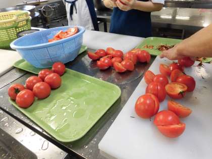 給食たんけん 「ホタテ貝とフレッシュトマトのスパゲッティ」