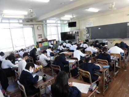 1組は国語のテストです。文章が長くなり、難しくなってきますが、がんばろう。2組は天気の範囲の理科のテストです。