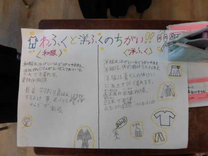1組も2組も国語です。和と洋のちがいについて、1組は班でまとめているポスターが仕上がってきた班もあります。2組は良い姿勢で音読をしています。