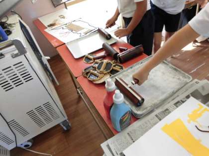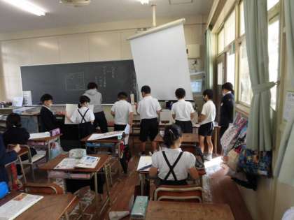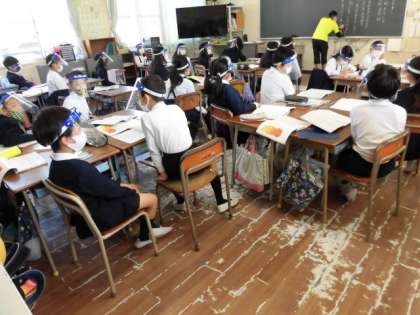 1組は図工で作成している作品の仕上げをしていきます。ローラーで色をぬっていきます。2組は国語で「サーカスのライオン」でじんざが叫んだ時の気持ちについて考えています。